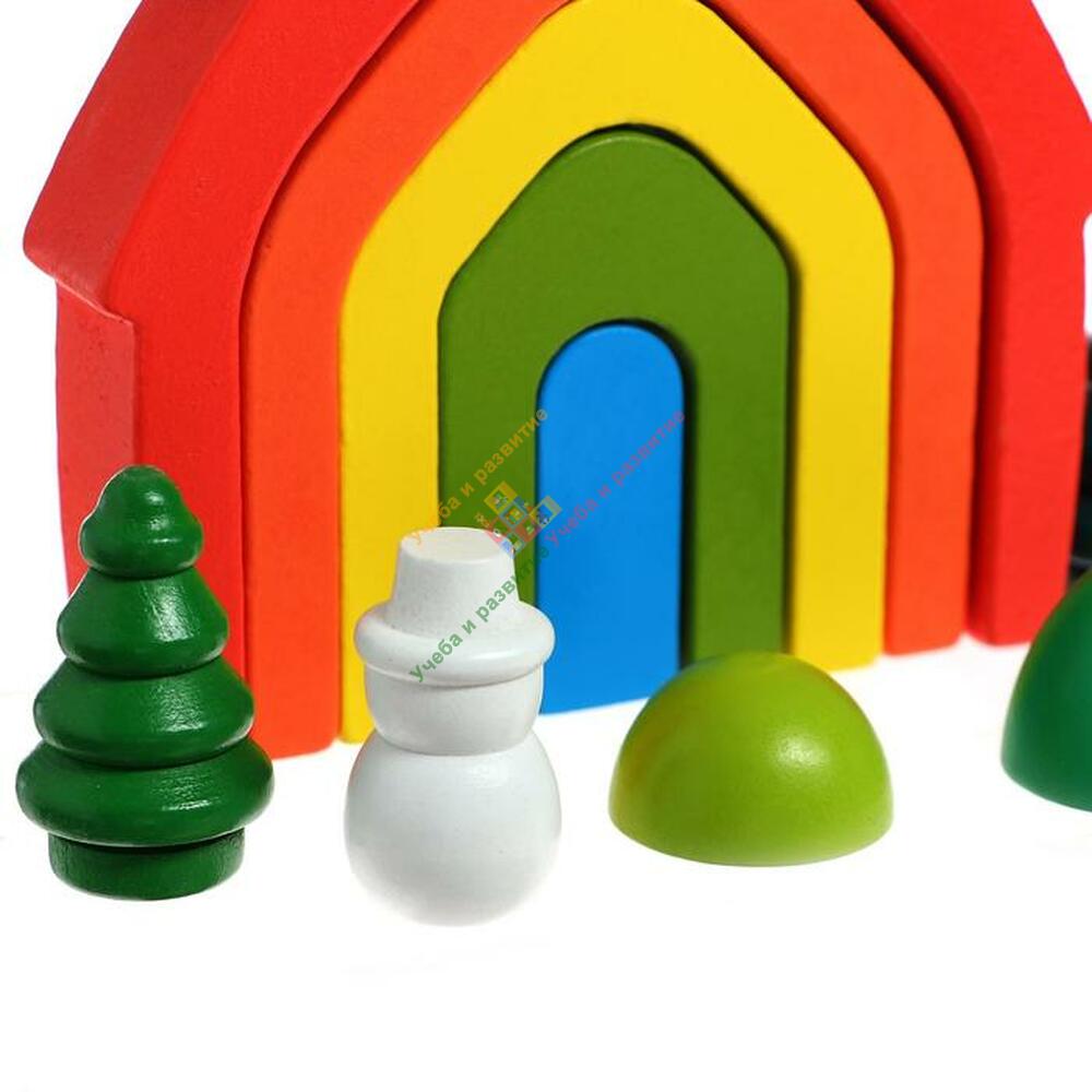 Элементы набора выполнены из экологичного материала — дерева — и покрыты безопасными для детского здоровья красками. Детали тщательно обработаны и не имеют острых углов.