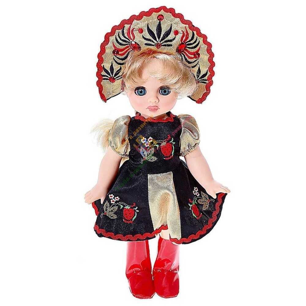 «Эля — хохломская красавица» из серии «Этно» одета в костюм с национальной росписью. На ней чёрно-золотое платье с изображениями клубники, а на ножках высокие красные сапожки из искусственной кожи. Завершает образ кокошник с витиеватым узором. Одежда легко снимается и надевается, что позволяет разнообразить игру и менять наряды. Переодевания развивают мелкую моторику рук, творческое мышление и чувство стиля.