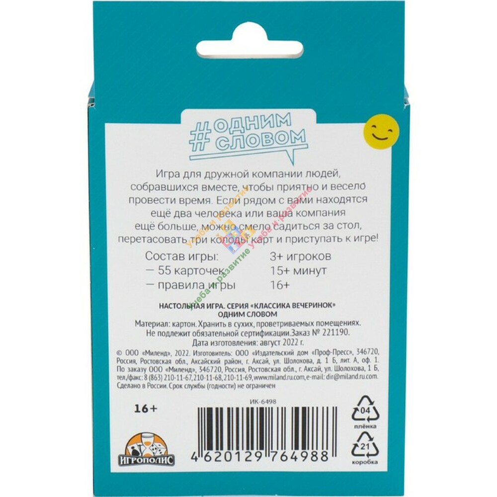 Карточная игра "Одним словом", 55 карточек