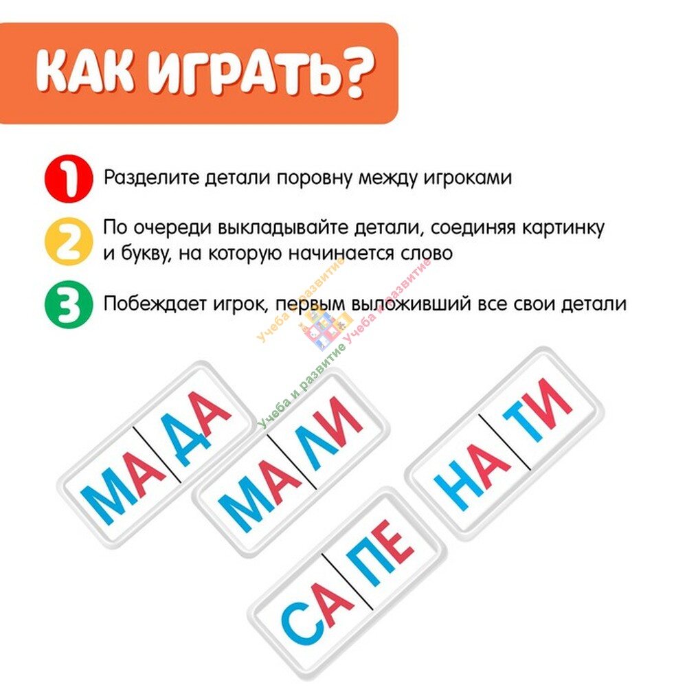 Домино «Читаем по Слогам », пластик, 28 деталей