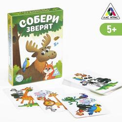 Настольная быстрая игра «Собери зверят», 32 карточки