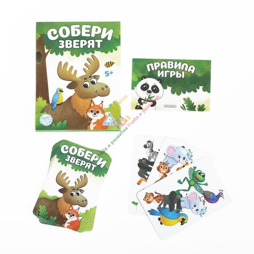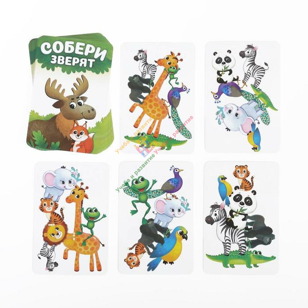 На карточках вас ждут забавные животные разного размера. На одной карточке изображено 6 зверей, а в сумме это целых 192 представителя фауны!