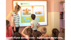 Дисплей модуля Банк – сенсорный. Прикосновения к экрану позволяют переходить из помещения в помещение, совершать экскурсии по банку. Такие экскурсии позволяют в доступной форме обсудить предназначение каждого из них, поговорить с детьми о различных профессиях сотрудников банка и роли человека в банковской системе.