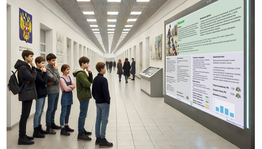 Будет работать на вашем оборудованииПрограмма «Магазин Профессий» будет работать на интерактивном и демонстрационном оборудовании, установленном в фойе, коридорах, рекреациях, учебных классах образовательных учреждений. На том оборудовании, которое часто простаивает во многих организациях. В том числе: