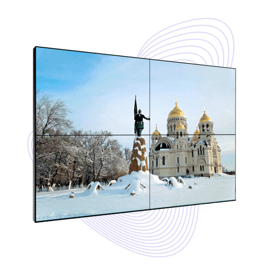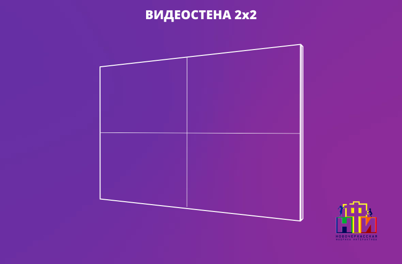 Для ваших проектов в нашем арсенале имеются видеостены трех форматов. Один из них – видеостена 2х2, собранная на собственном креплении из 4 панелей диагональю 55 дюймов.