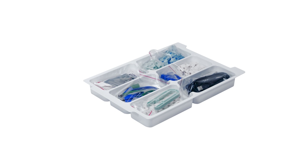 Весь набор укомплектован в пластиковую систему хранения, которая закрывается пластиковой прозрачной крышкой на защелках для обеспечения наблюдения за содержимым.