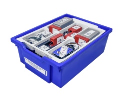 Цифровая лаборатория укомплектована в пластиковую систему хранения, которая закрывается прозрачной пластиковой крышкой на защелках для обеспечения наблюдения за содержимым. Комплект оборудования и датчики в системе хранения располагается на ложементах.