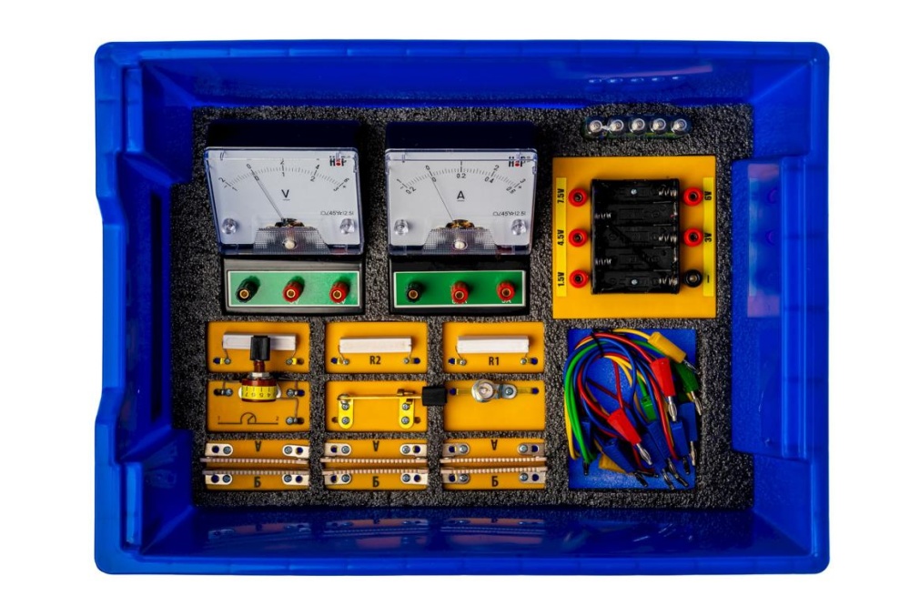 - Прибор для измерения показаний напряжения в участках электрической цепи (диапазоны измерений: от 0 Вольт до 6 Вольт, от 0 Вольт до 3 Вольт)