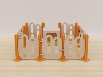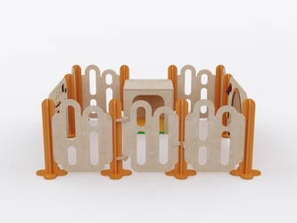 - Широкие сквозные отверстия модулей манежа (70-80 мм) дают хороший обзор педагогу и не позволяют застрять ручкам и ножкам малышей.