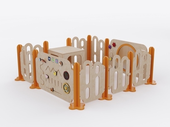 - Две стороны бизибордов обеспечивают возможность для игр как внутри манежа, так и за его пределами: стороны отличаются оснащением.