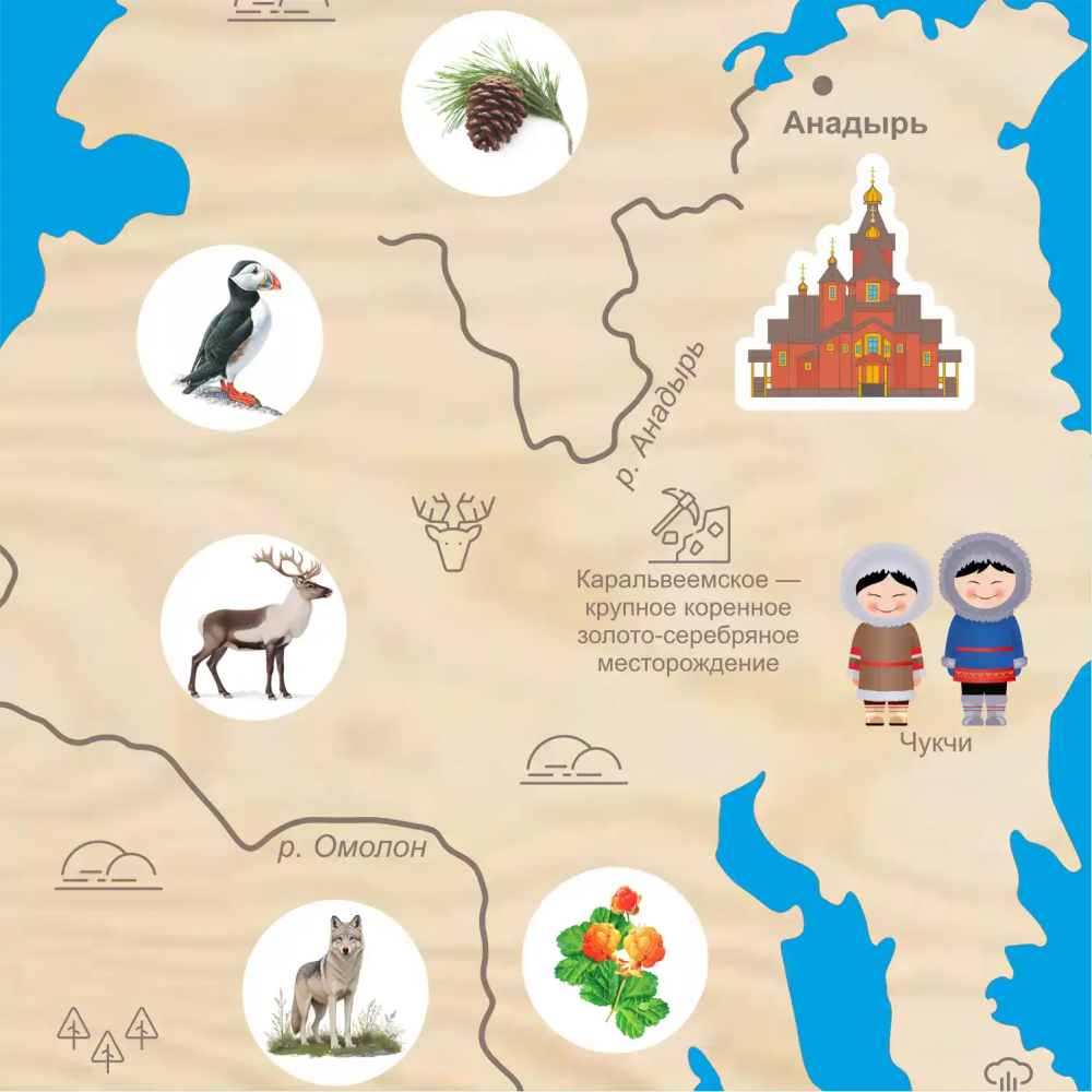 - Встроенная аудиосистема на 30+ аудиоматериалов — о народах, промыслах, науке, животных, архитектуре, праздниках, природе и многом другом.
