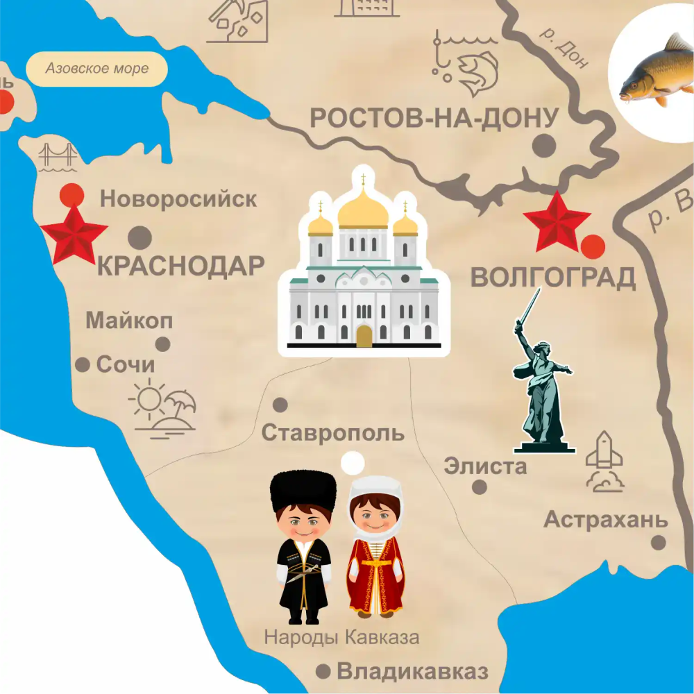- Пиктограммы и образы по всей поверхности карты: ребёнок может самостоятельно находить и обсуждать объекты.