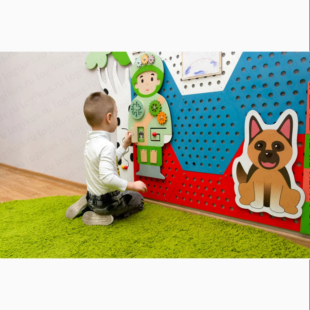 Комплект перфорированных настенных панелей с декором для оформления патриотического уголка в дошкольном учреждении.