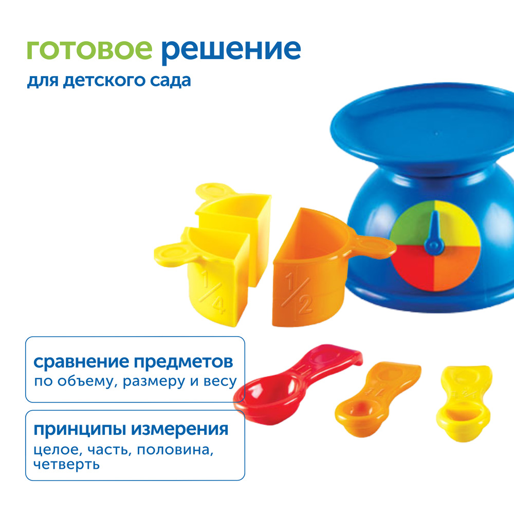 - Учиться сравнивать предметы по объему, размеру и весу с использованием мерных емкостей и весов