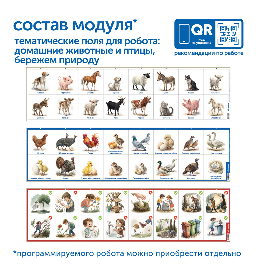 С модулем дети узнают о различных видах домашних животных, их повадках и особенностях, получат первые навыки наблюдения за природой, а также узнают как они могут помочь в охране природы.