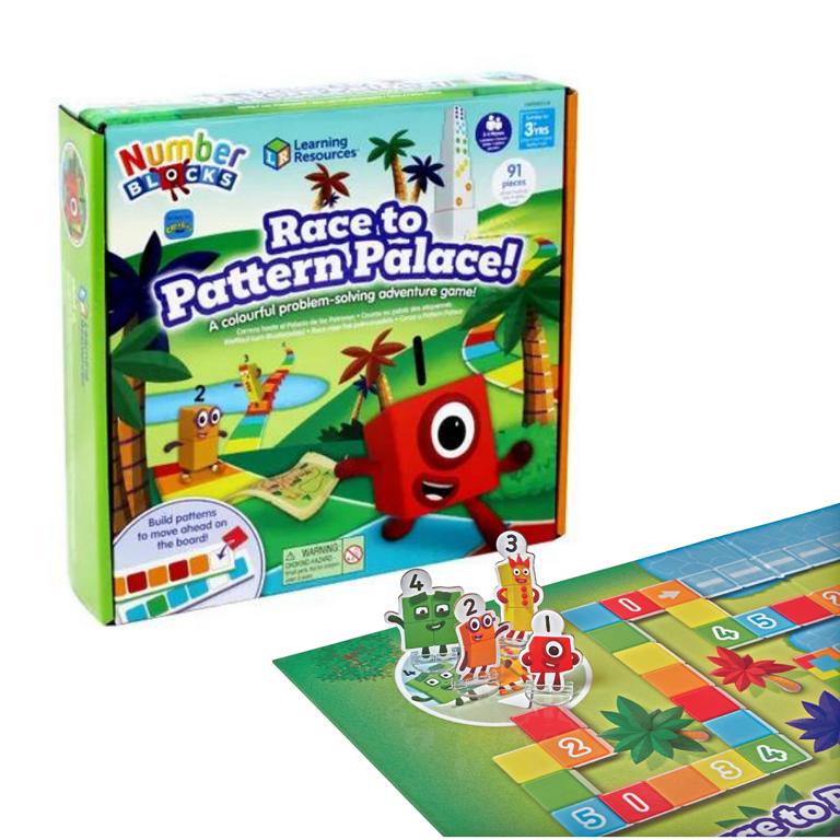 Кто первым доберётся до «Дворца Узоров»? Настольная игра по мотивам мультсериала Numberblocks (доступен на YouTube) помогает ребёнку тренировать счёт, достраивать логические последовательности и развивать творческое мышление.