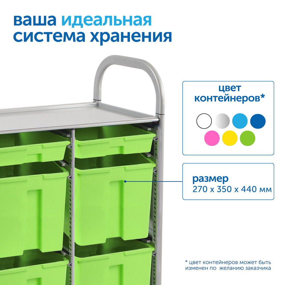 Контейнер без крышки для хранения обучающих материалов в ДОУ. Обеспечивает лёгкий доступ к материалам, делая игровую среду более наглядной и упорядоченной, стимулируя активность и самостоятельность детей.