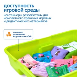 Контейнер без крышки для хранения обучающих материалов в ДОУ. Обеспечивает лёгкий доступ к материалам, делая игровую среду более наглядной и упорядоченной, стимулируя активность и самостоятельность детей.
