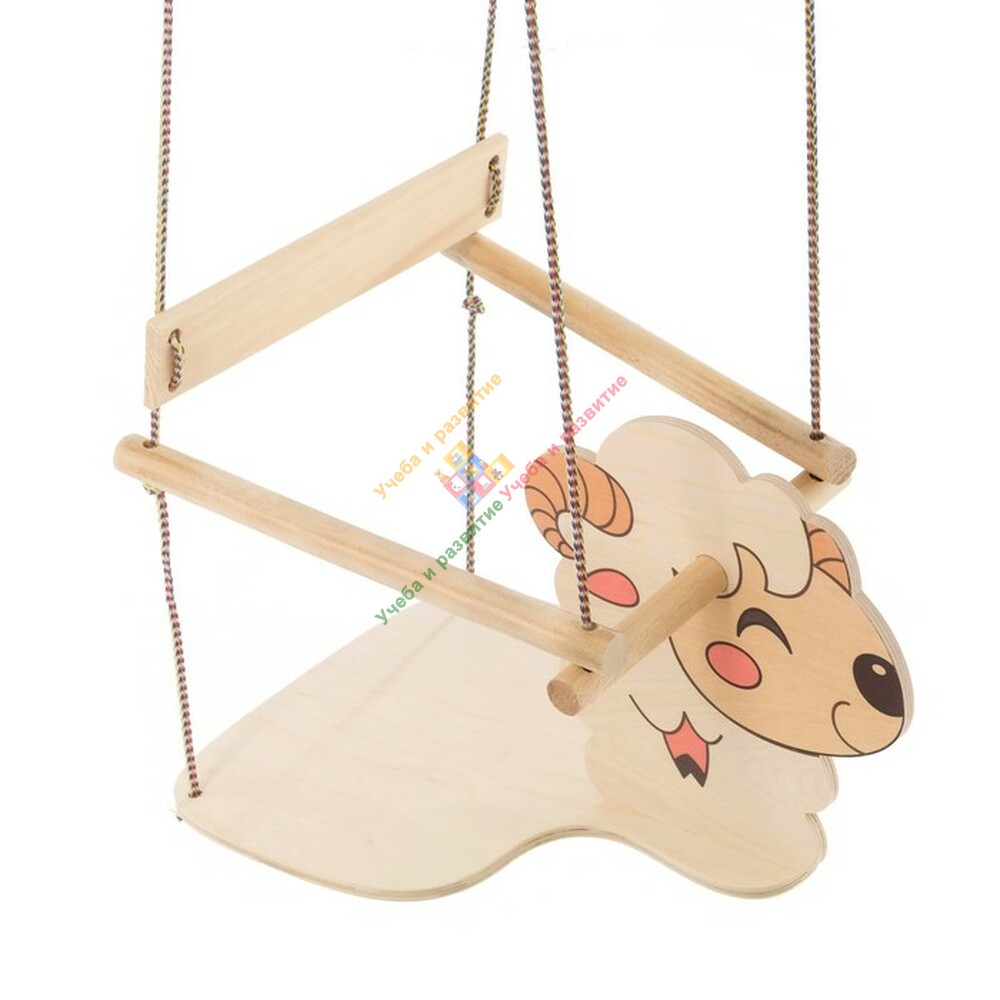 - Изделие изготовлено из дерева — это экологически чистый и безопасный материал. Даже если качели находятся на улице под прямыми солнечными лучами, ваш ребёнок не обожжётся.